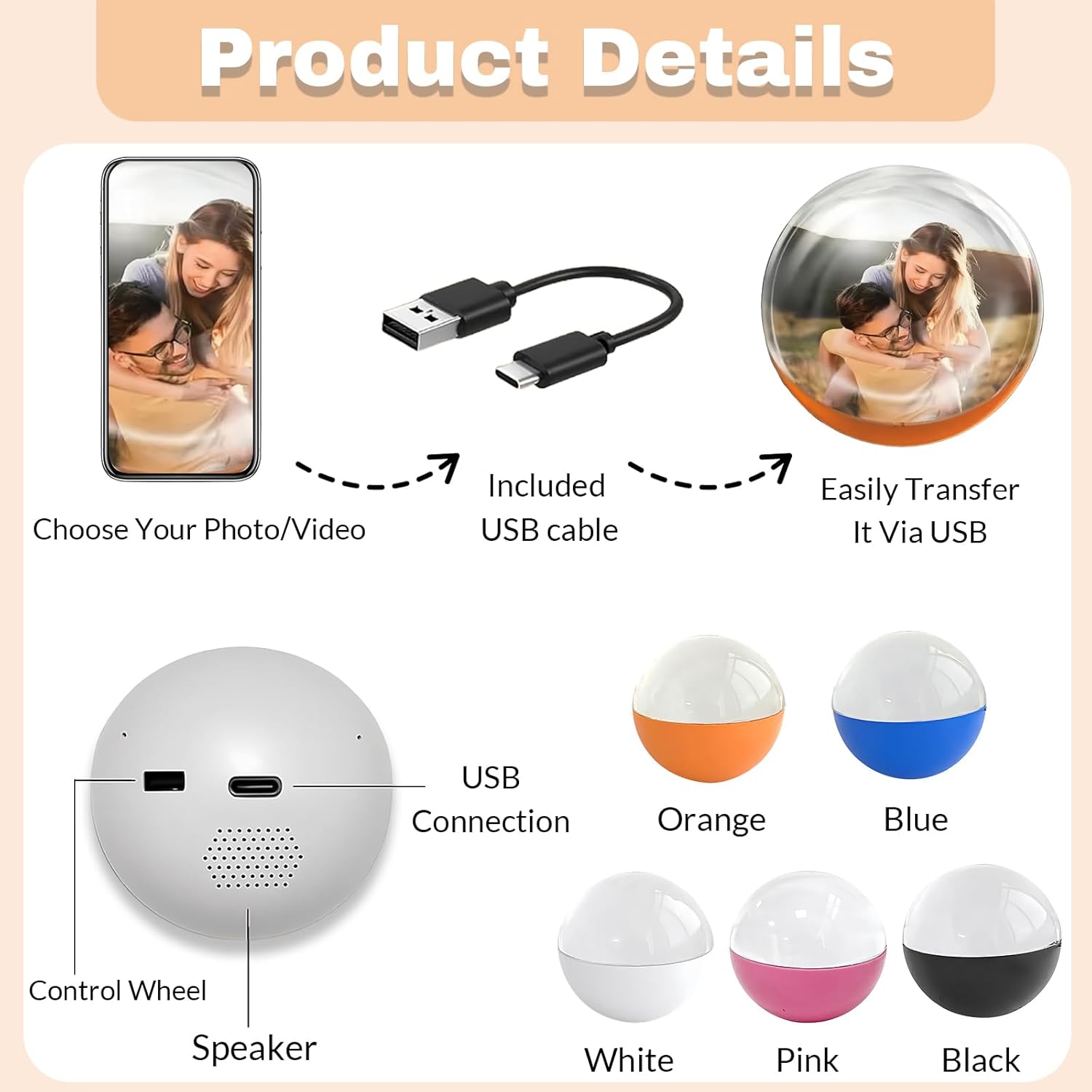 ๐ชฉย Immersive 3D Visuals: The crystal ball utilizes 3D holographic projection technology. Whether playing a baby's growth video, a sweet couple's photo, a wedding video, or even travel photos, everything instantly comes to life, as if the beautiful scene were literally "encased" within the crystal ball. The immersive viewing experience far surpasses that of a standard screen.